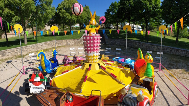 Le manège Luna Parc propose un carrousel avec 8 sujets, un stand de pêche aux canards et un stand de barbe à papa; Idéal pour amuser petits et grands pendant le vin d'honneur!